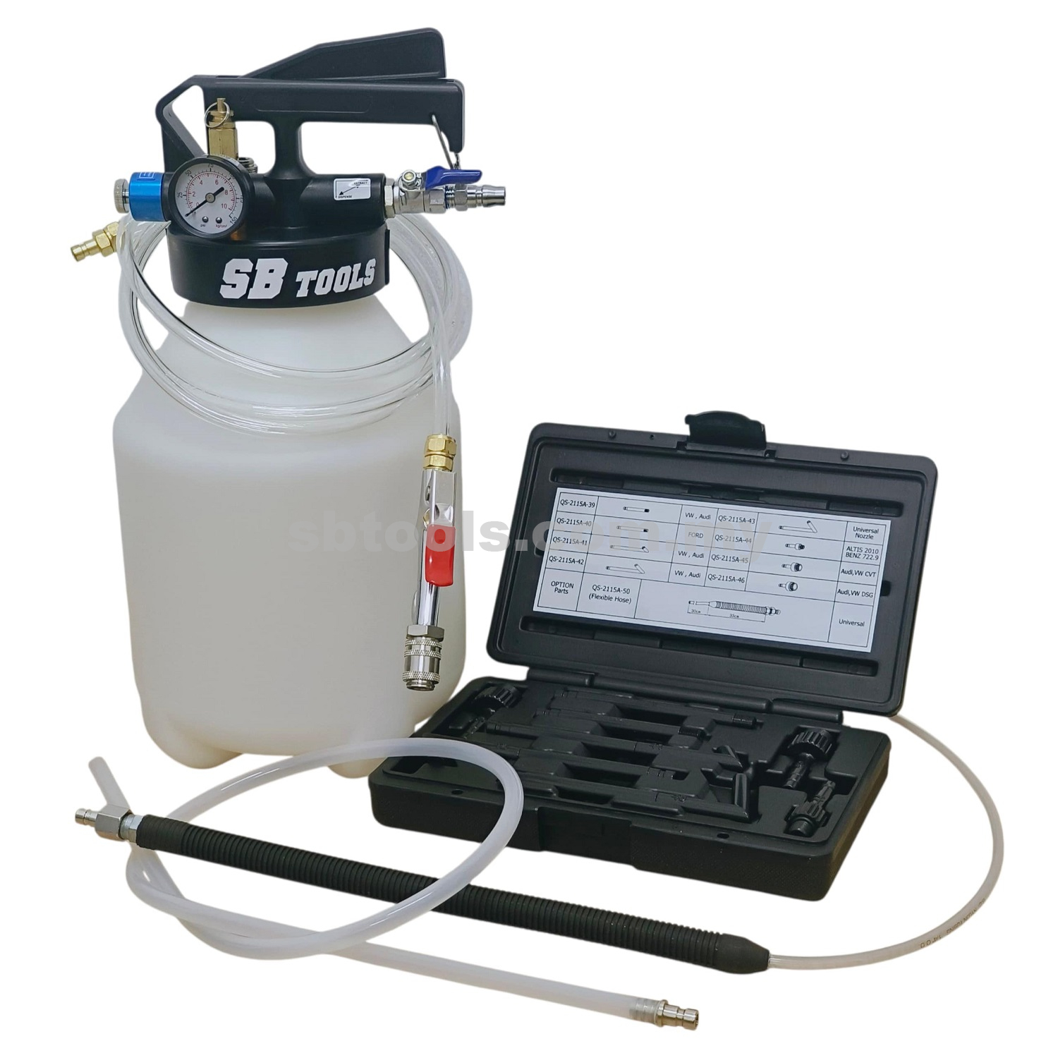 SB TOOLS Pneumatic Transmission Filling System & Fluid Extractor / Dispenser With 8 Adapters